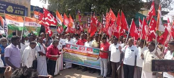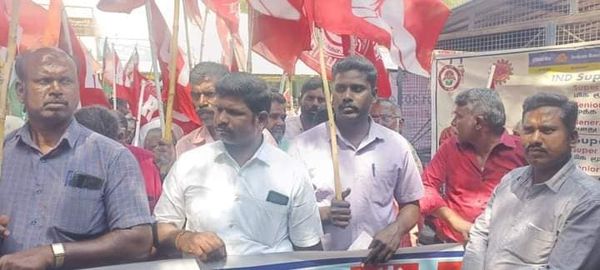 CITU. AITUC. LPF.INTUC. HMS.AICCTU மற்றும் SKM ஆகியோர் கூட்டாக மறியல் செய்தனர்.