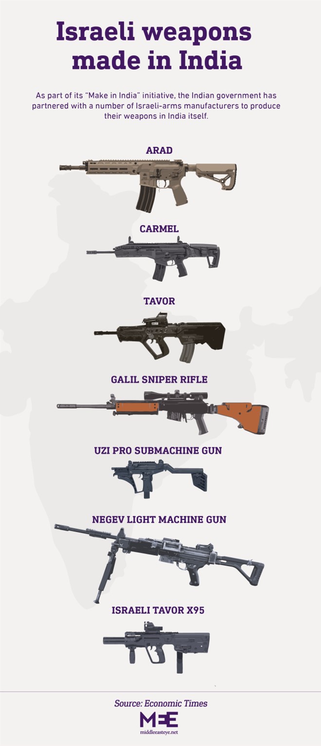 இஸ்ரேல் காஸாவின் மீது தொடுத்துவரும் தாக்குதலில் பயன்படுத்தப்படும் துப்பாக்கிகள் மற்றும் ட்ரோன்களில் சில இந்தியாவில் இருந்து தாயாரித்து அனுப்பப்படுகிறது. பிப்ரவரி மாதம் 20 ஹெர்ம்ஸ்-900 ட்ரோன்களை இந்தியா இஸ்ரேலுக்கு ஏற்றுமதி செய்துள்ளது. இதனை தயாரிப்பதே மோடியின் மானசீக நண்பரான அதானியின், அதானி டிபன்ஸ் மற்றும் ஏரோஸ்பேஸ் நிறுவனம் தான்.