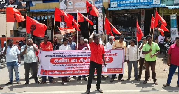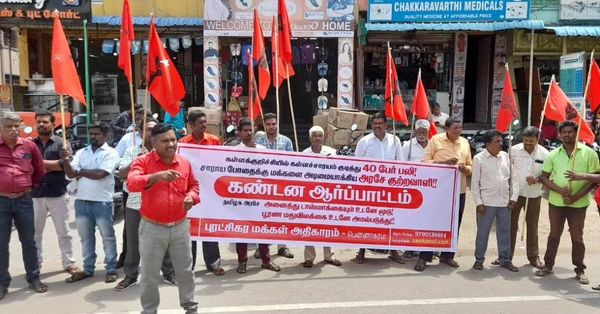 கள்ளக்குறிச்சியில் கள்ளச்சாராயம் குடித்து 50 பேர் பலி! சாராயபோதைக்கு மக்களை அடிமையாக்கிய அரசே குற்றவாளி என்ற முழக்கத்துடன் தடையை மீறி கண்டன ஆர்ப்பாட்டம் பென்னாகரம் பேருந்து நிலையத்தில் புரட்சிகர மக்கள் அதிகாரம் சார்பாக 21-06-2024 அன்று காலை 11.00 மணிக்கு, கள்ளக்குறிச்சியில் விசச்சாராய மரணங்களுக்கு காரணமான அரசைக் கண்டித்து ஆர்ப்பாட்டம் நடைபெற்றது. இந்த ஆர்ப்பாட்டத்திற்கு தோழர்கள் அனுமதி கோரியபோது அனுமதி மறுத்து ஆர்ப்பாட்டத்துக்கு தடைவிதித்தது கடிதம் கொடுத்தது பென்னாகரம் போலிசு. எனினும் தடையை மீறி ஆர்ப்பாட்டம் நடைபெற்றது. […]