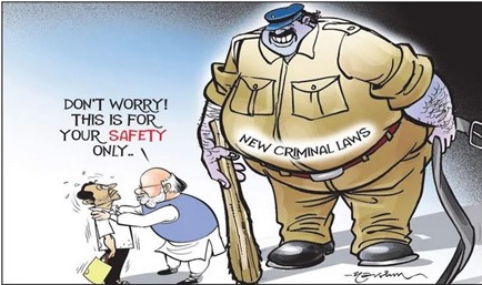 புதிய (பாரதிய) குற்றவியல் சட்டங்கள் ஜூலை 1 முதல் அமலுக்கு வந்துள்ளன. ஏற்கனவே நடைமுறையில் இருந்த இந்திய குற்றவியல் சட்டம் 1860 (IPC) இந்திய குற்றவியல் நடைமுறை சட்டம் 1872(CrPC) மற்றும் இந்திய சாட்சிகள் சட்டம்1863(IEA) ஆகிய மூன்று சட்டங்களுக்குப் பதிலாக பாரதிய நியாய சன்ஹிகீதா 2023, பாரதிய நாகரிக் சுரக்க்ஷா 2023 மற்றும் பாரதிய சாட்சியா 2023 என்ற மூன்று சட்டங்களை கொண்டு வந்துள்ளது மோடி அரசு.