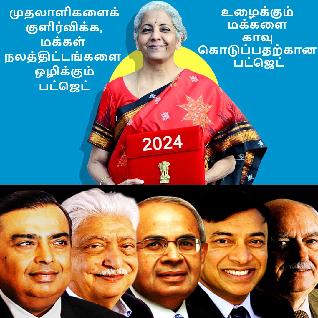 மோடி தலைமையிலான காவி கார்ப்பரேட் பாசிச கும்பல் மீண்டும் ஒன்றியத்தில் ஆட்சியைக் கைப்பற்றியிருப்பதை அடுத்து நிதியமைச்சர் நிர்மலா சீதாராமன், 2024-ம் ஆண்டுக்கான முழு பட்ஜெட்டை நாடாளுமன்றத்தில் தாக்கல் செய்துள்ளார்.