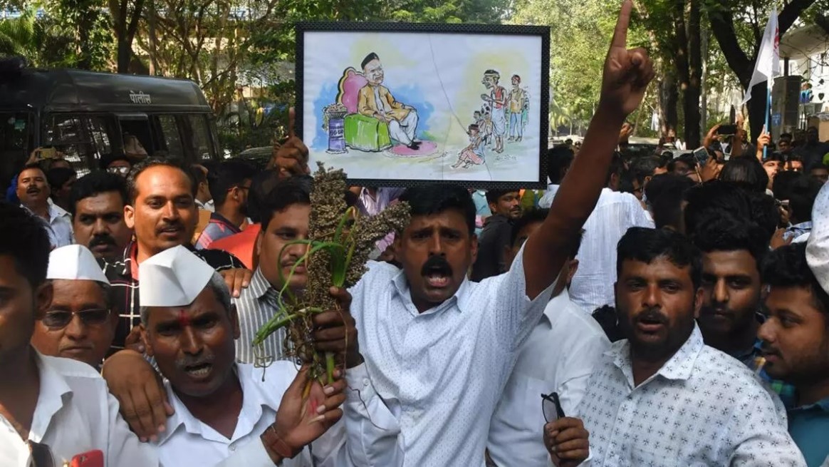 பயிர் காப்பீட்டு நிறுவனங்களின் பகற்கொள்ளைக்கு எதிராக போராடும் மராட்டிய விவசாயிகள்!