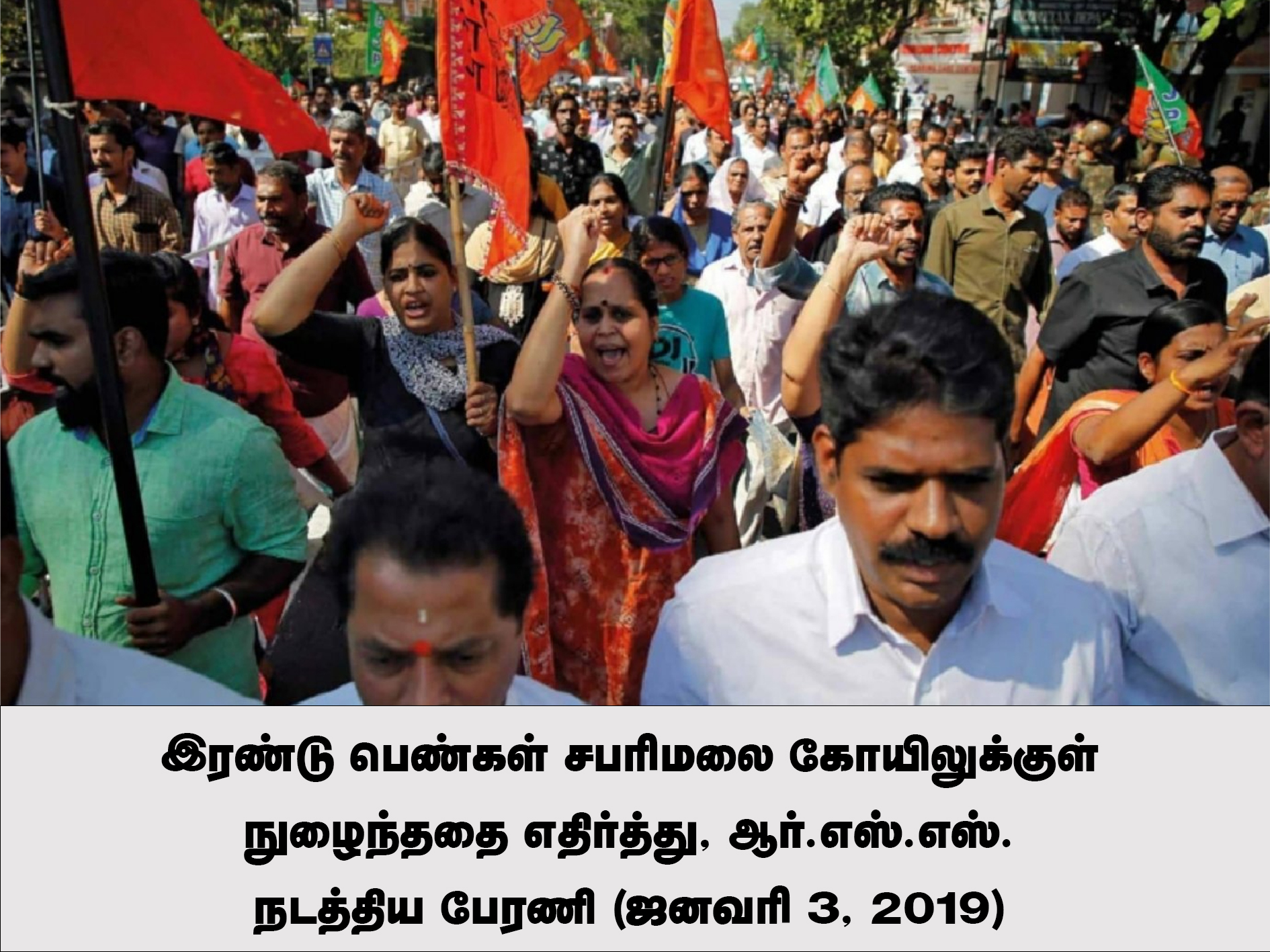 ஆர்.எஸ்.எஸ்-சுக்கு எதிரான பினராயி விஜயன் அரசின் வரம்புக்குட்பட்ட நடவடிக்கைகள், எவ்வாறு அவ்வமைப்பின் [வளர்ச்சிக்கு] இடமளித்ததாகவே அமைந்தது என்பதற்கு சபரிமலை போராட்டம் சிறந்த உதாரணமாகும். ஆர்.எஸ்.எஸ். அமைப்பை மேம்போக்காகக் கையாள்வது என்பதன் பொருள் அவ்வமைப்பு செய்யக் கூடிய ஒரே செயலான [சமூகத்திற்கு] தீவைப்பதை அனுமதிப்பதே ஆகும். அக்டோபர் 2018-ல், யாரும் சட்ட ஒழுங்கை தன் கையில் எடுப்பதை அனுமதிக்க மாட்டோம் என்று பினராயி விஜயன் வாக்களிந்திருந்த போதிலும், [சபரிமலைக்கு வந்த] வாகனங்களைப் போராட்டக்காரர்கள் தடுத்து நிறுத்தி அந்த வாகனங்களில் பெண்கள் இருக்கிறார்களா என்று சோதனையிட்டனர். கேரளத்தின் தெற்கு மண்டல ஏ.டி.ஜி.பி. நின்றுகொண்டிருந்த இடத்திலிருந்து வெறும் 300 மீட்டர் தொலைவில்தான் இச்சம்பவமானது நடந்தது. போலிசுக்கும் போராட்டக்காரர்களுக்கும் இடையில் பலமணிநேரம் நீடித்த சண்டைக்குப் பின்னர், பெரும் எண்ணிக்கையிலானவர்கள் காயமடைந்ததுடன் அந்த நாள் முடிவுக்கு வந்தது. ஒரு மாதம் கழித்து, 144 தடை உத்திரவு பிறப்பிக்கப்பட்டிருந்த போதிலும் வல்சனின் தலைமையின் கீழ் ஆயிரக்கணக்கான இந்துத்துவவாதிகள் சபரிமலைக் கோயிலைத் தங்கள் கட்டுப்பாட்டிற்குள் கொண்டுவந்தனர். அதையும் அவர்கள் போலிசின் கண் முன்பே செய்தனர். ஒரு ஒலிப்பெருக்கியை வல்சனின் கையில் கொடுத்துவிட்டு, அவர் திரட்டிவந்த கூட்டத்தை அவரால்தான் கட்டுப்படுத்த முடியுமென்று நம்பி நின்றுகொண்டிருந்ததைத் தவிர சபரிமலையில் காவலுக்கு இருந்த போலிசால் வேறு எதையும் செய்ய இயலவில்லை. தற்காலிகமாக சட்ட-ஒழுங்குப் பிரச்சனை ஏற்படுவதைத் தவிர்த்ததைத் தவிர போலிசின் இந்தச் செயல்பாடு வேறெதையும் செய்யவில்லை. சில நாட்களில், மாநிலம் நெடுகிலும் வல்சன் ஆயிரக்கணக்கானோரிடையே உரைகளை நிகழ்த்தினார். நூற்றுக்கணக்கான பேருந்துகளும் கடைகளும் கொளுத்தப்பட்ட பயங்கரமான வெறித்தனமான வன்முறைகளுக்கு அவை இட்டுச் சென்றன.