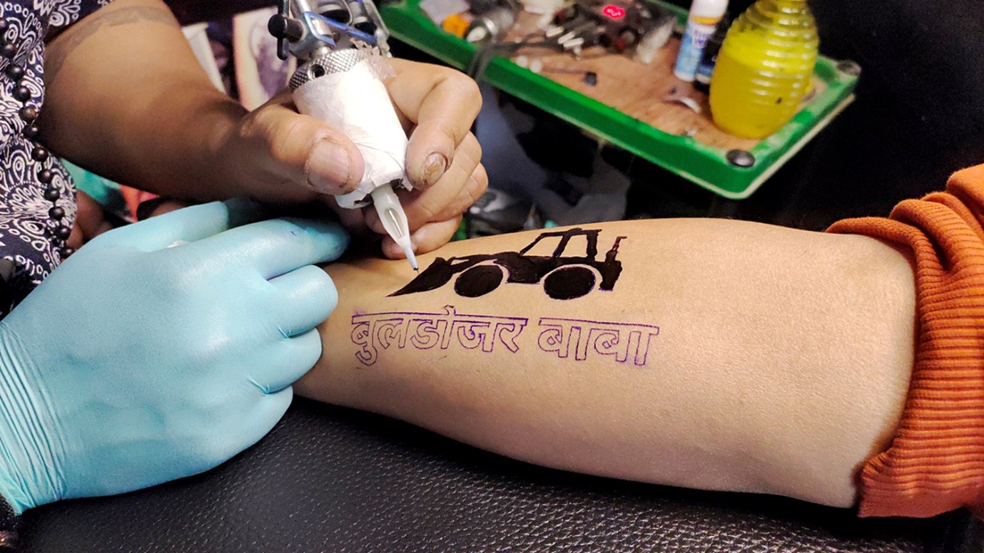 அந்த தேர்தல் பிரச்சாரத்தின் போது இந்துக்களுக்கு எதிராக இஸ்லாமியர்களை நிறுத்தும் பொருட்டு புல்டோசர்களை மையக்கருவாக கொண்டு பல இந்துத்துவா பாப் பாடல்கள் காவி பாசிஸ்டுகளால் பரப்பப்பட்டன; புல்டோசர் பாடல்கள் முழங்க காவி பாசிஸ்டுகள் தேர்தல் பிரச்சாரத்தில் பவனி வந்தனர். இந்துக்களின் எதிரிகள் இஸ்லாமியர்களே; இஸ்லாமியர்கள் இந்துக்களின் எதிர்காலத்திற்கு அச்சுறுத்தலாக இருக்கிறார்கள் என இந்து மத முனைவாக்கம் செய்து உபி தேர்தலில் வெற்றி பெற்றனர்; இந்து மதமுனைவாக்கத்தின் விளைவாக உபி தேர்தலில் யோகி 41% ஓட்டு வாங்கி வெற்றி பெற்றார்; காவி கும்பல்களால் உபி முதல்வர் யோகி ’புல்டோசர் பாபா’ என பெருமையுடன் அழைக்கப்பட்டார்.