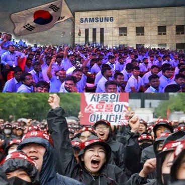 தென்கொரியாவிலுள்ள சாம்சங் தொழிற்சாலைகளில் 2021-ம் ஆண்டு வரை தொழிற்சங்கங்களை உருவாக்க அனுமதிக்கவில்லை. மேலும் தொழிலாளர்களின் உரிமைகளுக்கு கிஞ்சித்தும் இடம் கொடுக்காமல் அவர்களின் உழைப்பு சக்தியை ஒட்டச்சுரண்டி தன் மூலதனத்தைப் பெருக்கி ஏகபோகமாக கொழுத்து வளர்ந்து நிற்கிறது சாம்சங் நிறுவனம்.
