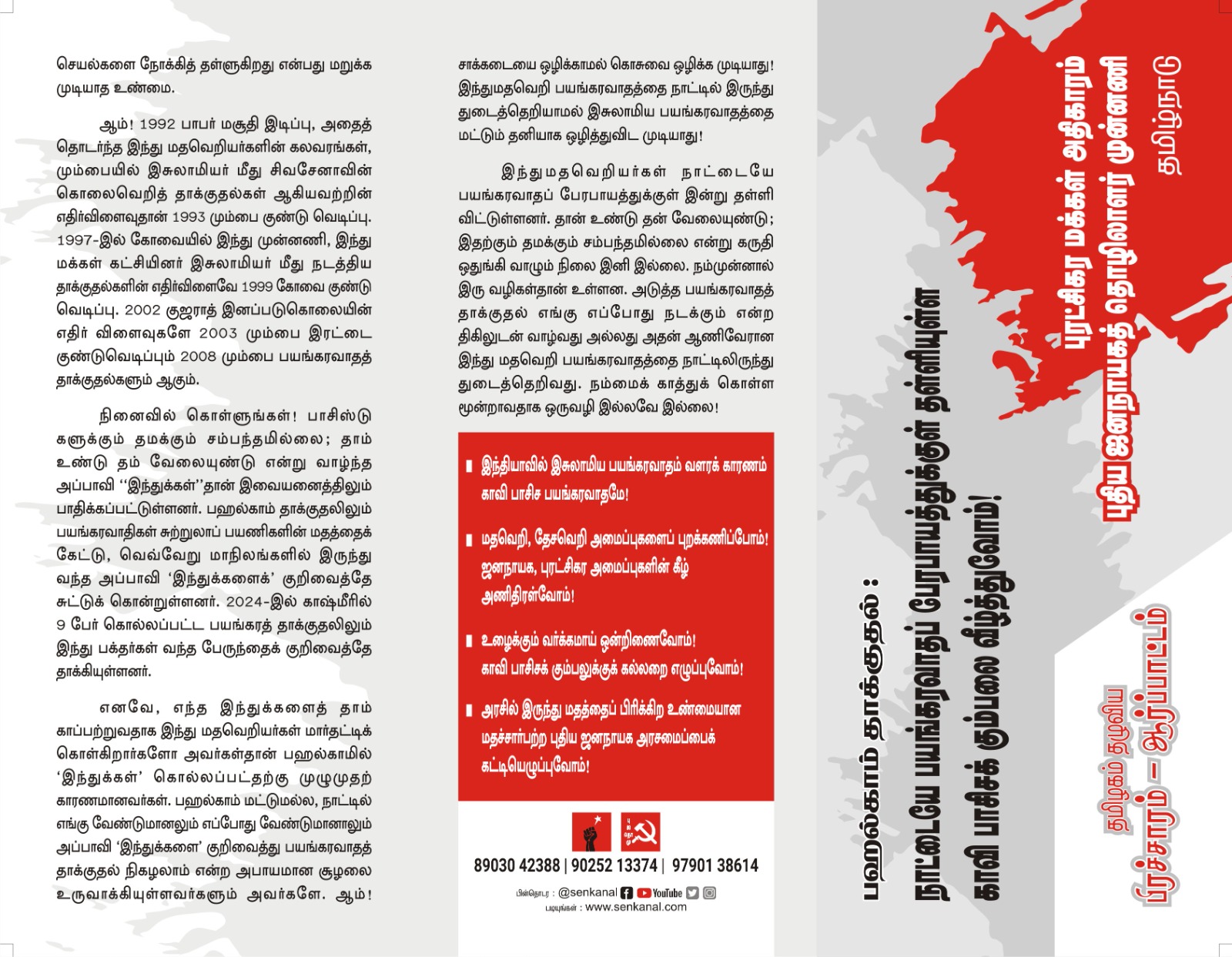 - மதவெறி, தேசவெறி அமைப்புகளைப் புறக்கணிப்போம்! ஜனநாயக, புரட்சிகர அமைப்புகளின் கீழ் அணிதிரள்வோம்!
