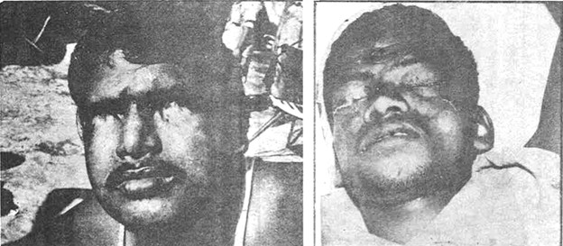 1979 – பகல்பூர் – போலீசால் கண்கள் குருடாக்கப்பட்ட இளைஞர்கள். இவர்கள் கண்களை சைக்கிள் கம்பியால் தோண்டி திராவகம் ஊற்றியது போலீசு.