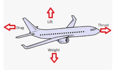 இவ்வாறு, ஒரு பொருளின் மீது எதிரெதிர் திசைகளில் நான்கு விசைகளை செயல்படுத்துவதன் மூலமே அப்பொருளை பறக்க வைக்க முடியும். இவைதான் விமானங்கள் பறப்பதற்கான அடிப்படைக் கோட்பாடு ஆகும். பறவைகள் பறப்பதற்கு கூட இதுதான் அடிப்படை. விமானங்களில், அதில் பொருத்தப்பட்டுள்ள என்ஜின்கள் இவ்விசைகளை உருவாக்குகின்றன. பறவைகளைப் பொறுத்தவரை, அவை தன்னுடைய இறக்கைகளின் மூலம் இவ்விசைகளை உருவாக்கிக் கொள்கின்றன.