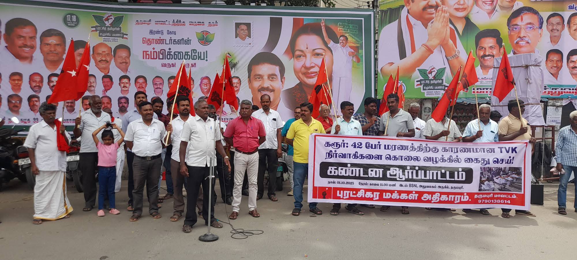 கரூர் 42 பேர் படுகொலை: விஜய் உள்ளிட்ட தவெக நிர்வாகிகளை கொலை வழக்கில் கைது செய் !